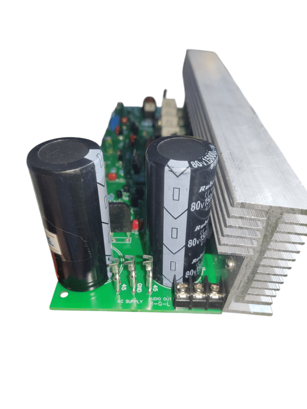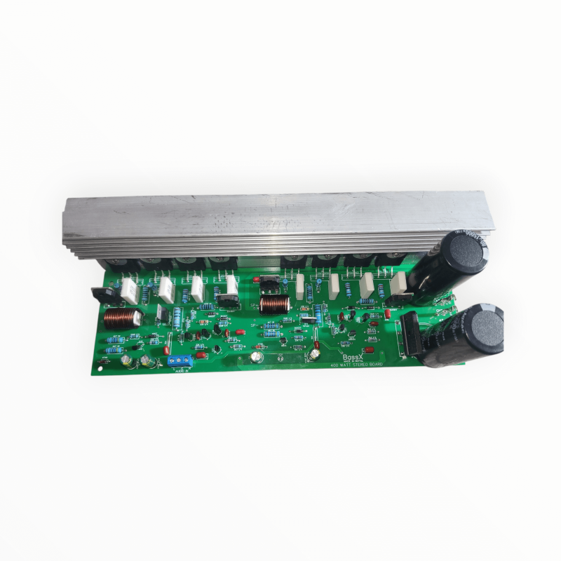 Upgrade your sound system with this 400-watt MOSFET stereo amplifier board, built for powerful, distortion-free audio. Designed with 8 high-quality 5200 & 1943 MOSFETs (4 per channel), it ensures stable performance, excellent sound quality, and long life. The board comes with a heavy aluminum heat sink for better heat management and durability.