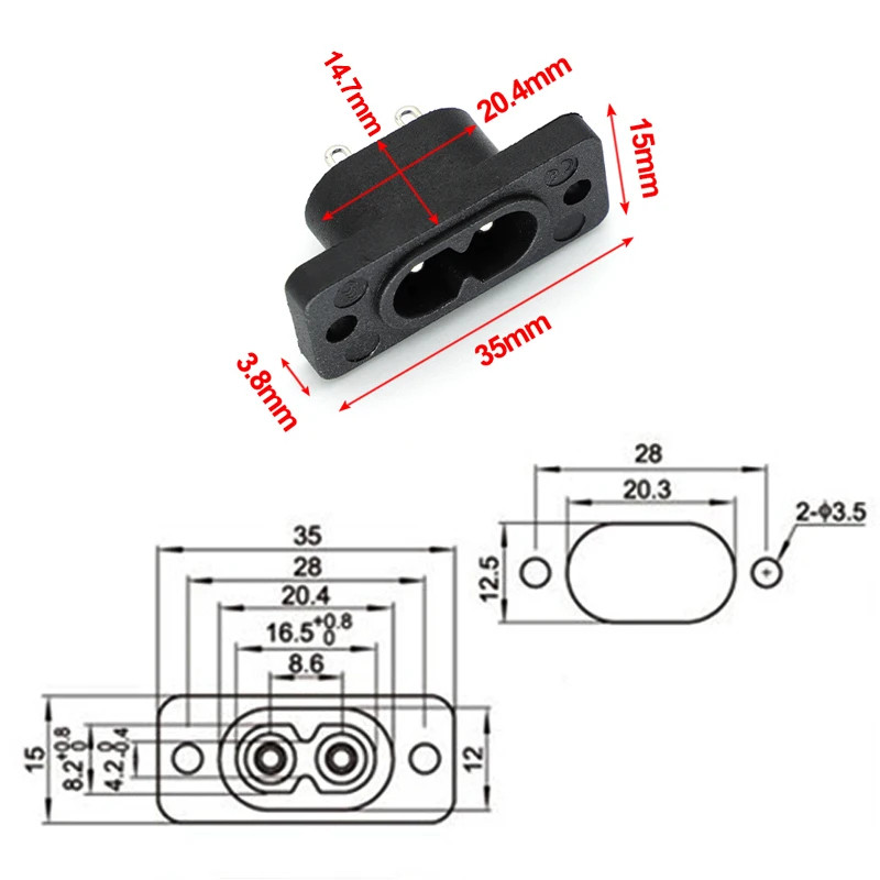 This 8-shaped embedded power socket is a high-quality AC electric connector designed for small household appliances and lighting fixtures. Featuring a durable plastic shell with metal contacts, it ensures stable and safe power transmission. The screw-type detachable wiring structure allows easy installation and supports various two-core power cords.