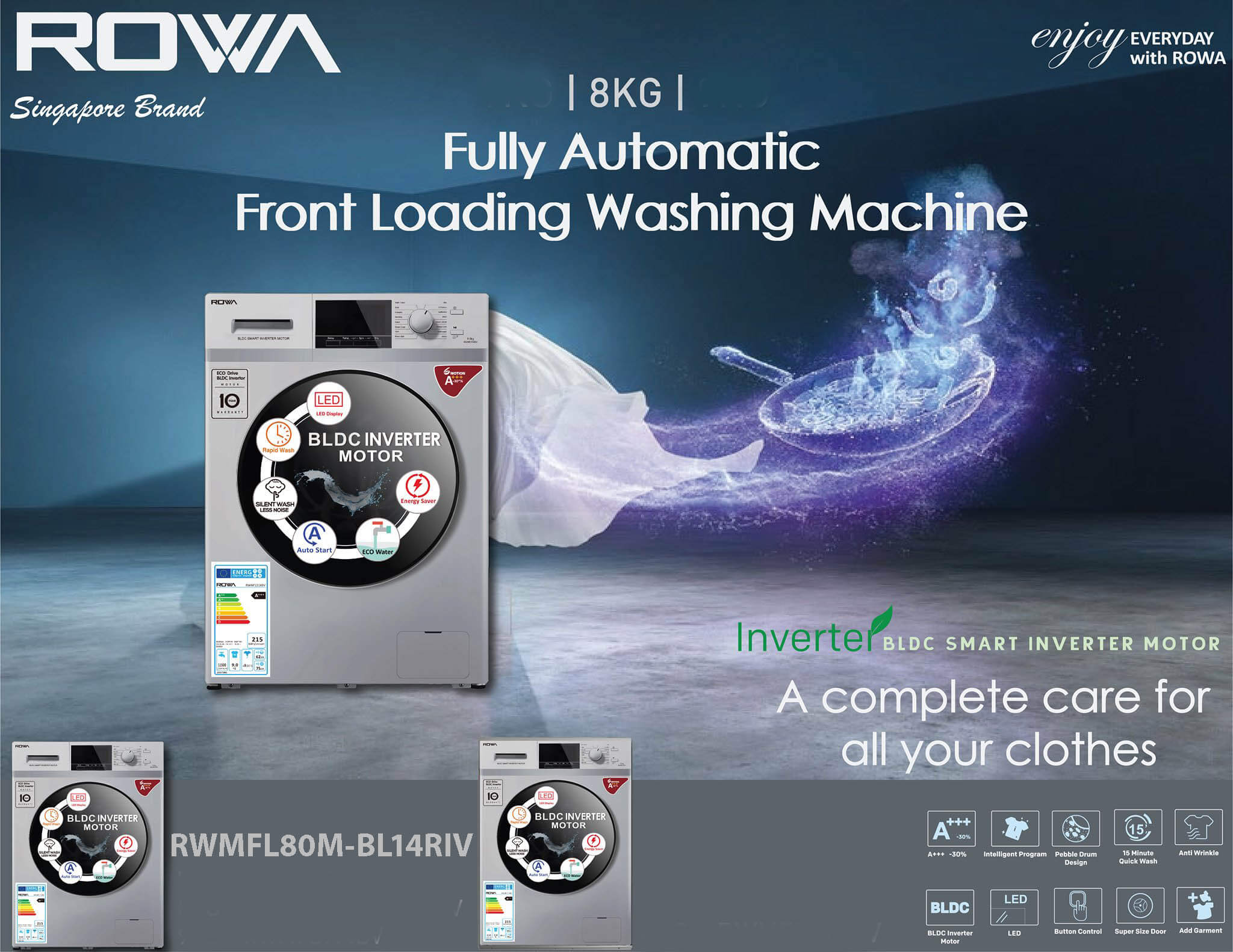 New Sunrise Rowa Washing machine - 8KG RWMFL80M-BL14RIV
